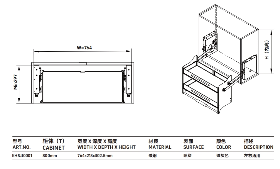 柜体:800mm 宽度 x 深度 x 高度:764*218*302.5mm